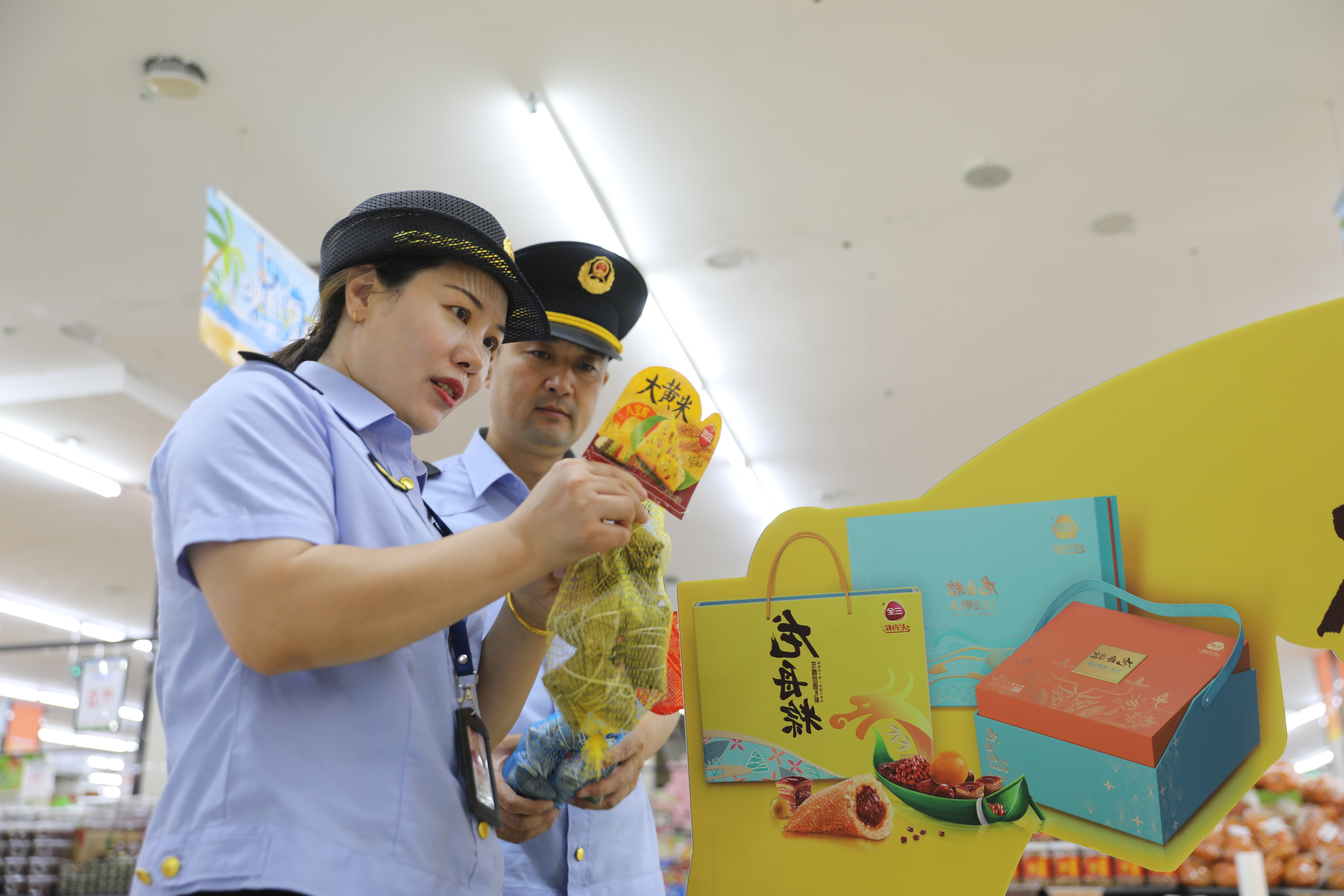 图为深泽县和栾城区组织市场监管局执法人员开展节前粽子市场专项检查活动。(食品抽检科、深泽县市场监管局、栾城区市场监管局)